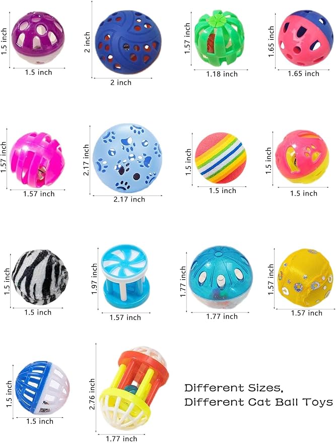 - Built-In Bells for Added Excitement: Every cat ball toy features an internal bell that jingles, captivating your cat’s attention and encouraging interactive playtime.