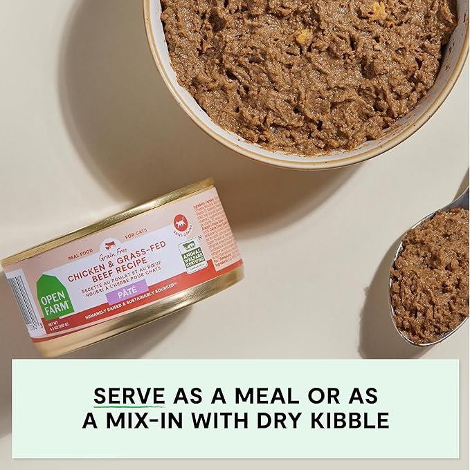 Open Farm Canned Cat Food, Paté for Complete & Balanced Nutrition, Grain-Free and Legume-Free Wet Cat Food, Chicken & Beef Recipe, 5.3oz Cans (Case of 12)