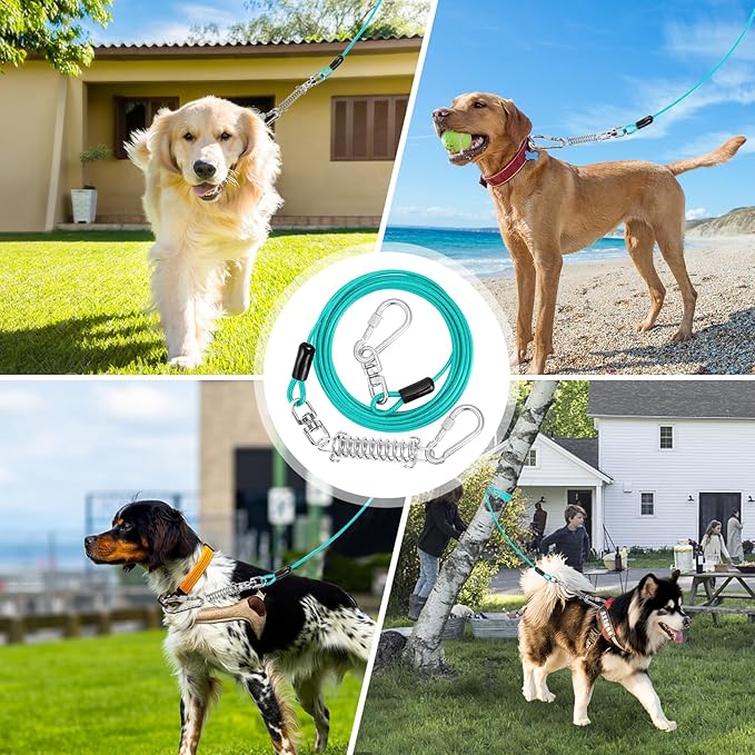 - 🐶Anti-Rust And Retractable:The vinyl covered long dog leads for yard and all hardwares are made to protect against rain and rust. The dog outside leash cable can reflect light at night or when the light is low, confirming the dog's position and providing safety protection