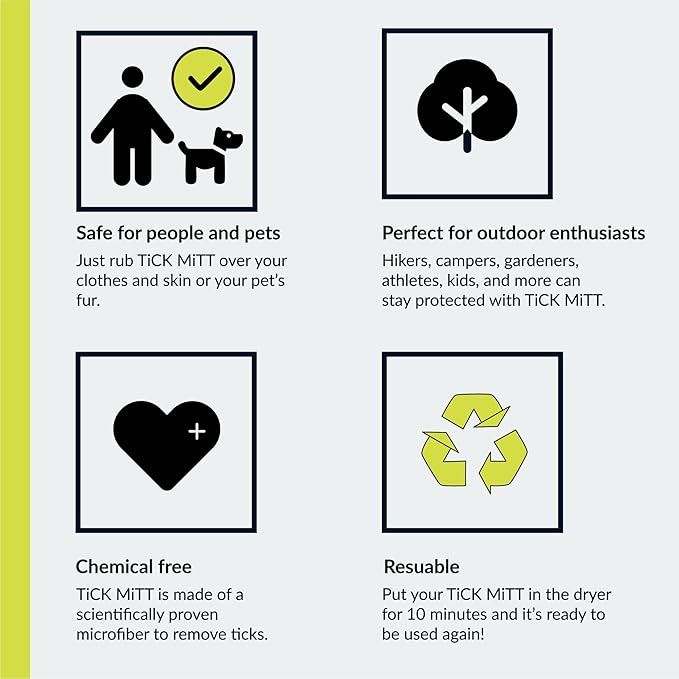 - ENHANCES OUTDOOR ADVENTURES: Whether you're hiking, camping, or simply spending time outdoors, your TiCK MiTT provides peace of mind knowing that you're protected from the threat of ticks.