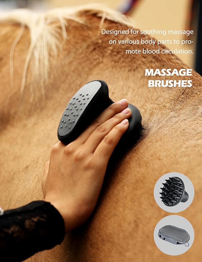 - Multi-Functional Set: This versatile horse grooming kit includes a variety of brushes designed for full-body cleaning, soothing massage, and coat grooming, providing a one-stop solution for all your horse care needs.