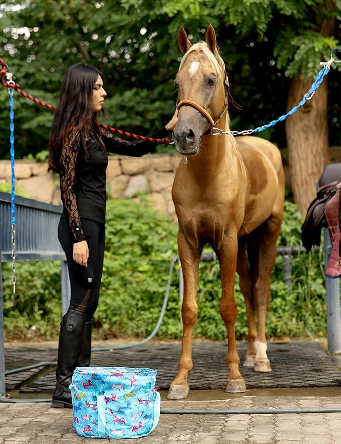 - Portable Water Bucket: The horse grooming set comes with a foldable tote bag that not only neatly stores all the brushes but also doubles as a mobile water bucket. This convenient feature allows for quick cleaning of brushes or your horse, eliminating the need to carry a separate bucket for on-the-go grooming.