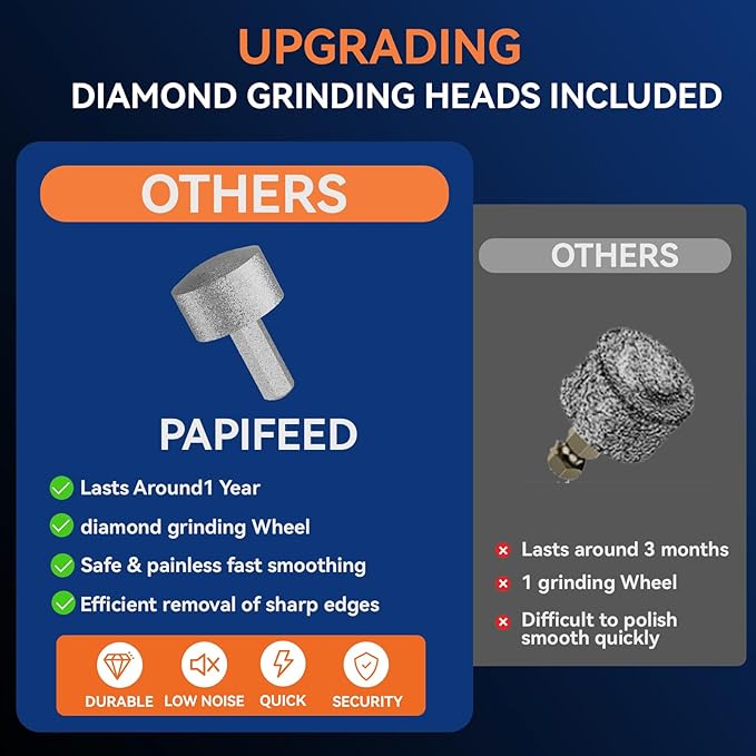 - 【Dust-Proof Splash Guardz】PAPIFEED dog nail clippers adopts an exclusive transparent dust cover design to capture grinding debris in real time and prevent nail dust from flying everywhere.Hygienic cleaning is clear at a glance, protecting the health of you and your pet while reducing the burden of household cleaning.