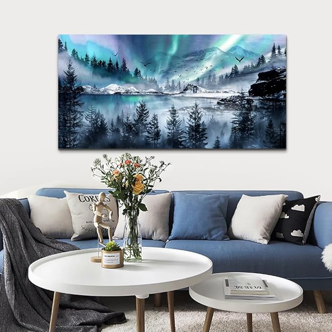 hyidecorart Canvas Wall Art For Living Room Large Wall Decorations For Office Stretched And Framed Canvas Prints Paintings Blue Aurora Scenery Pictures Artwork Ready To Hang Hotel Mural Wall Decor