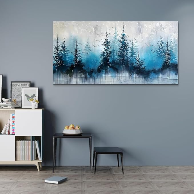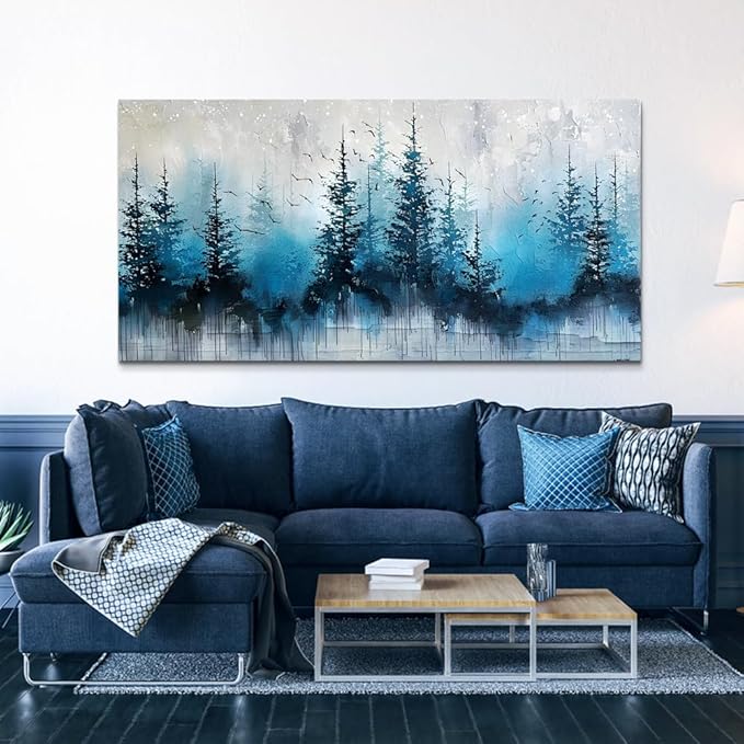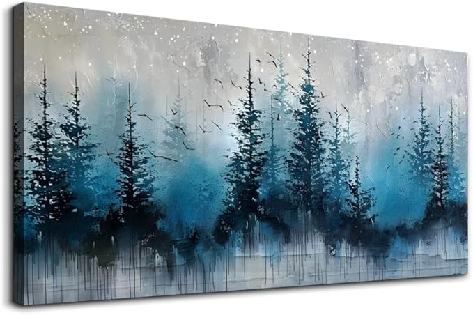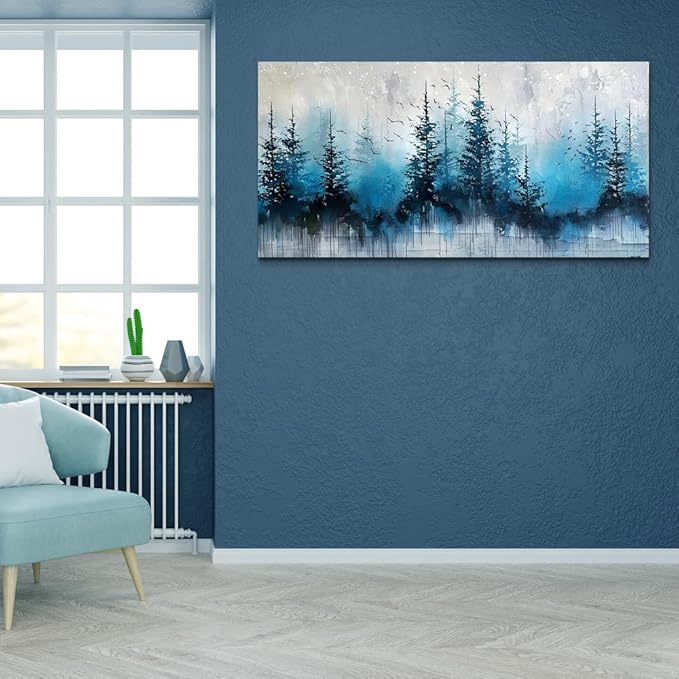 hyidecorart Large Wall Decor For Office Framed Wall Art For Living Room Scenery Abstract Wall Painting Bedroom Decoration Misty Forest Trees Pictures Artwork Canvas Prints Home Room Decor 60"X30"