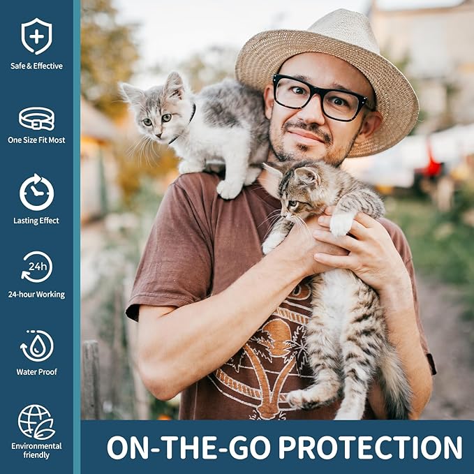 - Non-Greasy & Water-Resistant:Our flea collar for cats are water-resistant, allowing your cat to enjoy baths, swims, or walks in the rain without worry. The non-greasy formula is easy to handle, leaving no residue on your cat's fur or your hands.