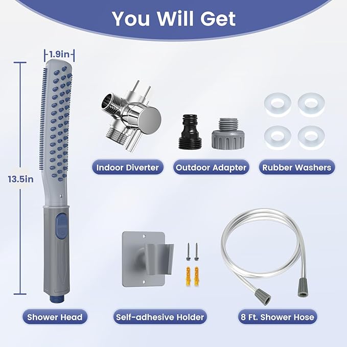 - 【Dog Wash Attachment For Shower】Shandus shower wand with metal diverter,can be easily connected to standard shower arms. When used outdoors, please use the included outdoor adapter to connect to the garden hose