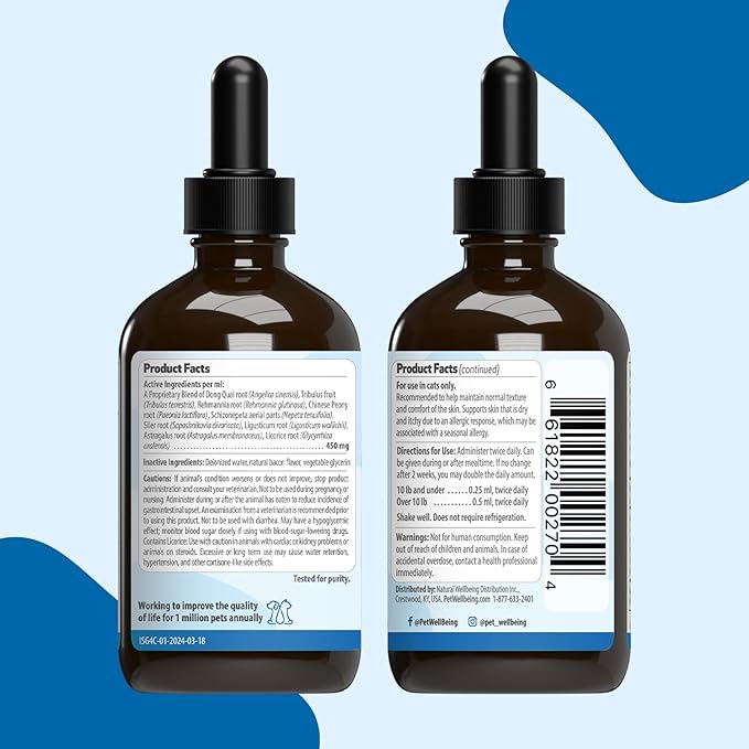 Pet Wellbeing Itch Support Gold for Cats - Occasional Itching, Scratching, and Hot Spots, Environmental and Seasonal Allergies, Dong Quai - Veterinarian-Formulated Herbal Supplement 4 oz (118 ml)