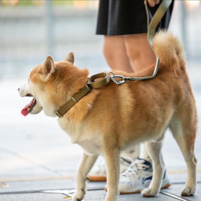 - 1. Martingale style collar without quick release buckle. This heavy duty collar slips easily over the head and gently tightens when pulled to anti escape. The limited closure ensures the collar is not too tight, providing gentle control during walks or training.