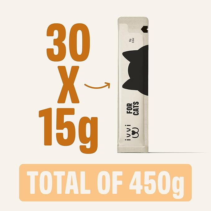 ivvi Skin & Coat for Cats – Functional Creamy Snack with Salmon Oil, Algae Oil, Zinc, Collagen & Biotin – Supports Skin and Fur Health – 30 x 0.53 oz Sachets – with Real Tuna