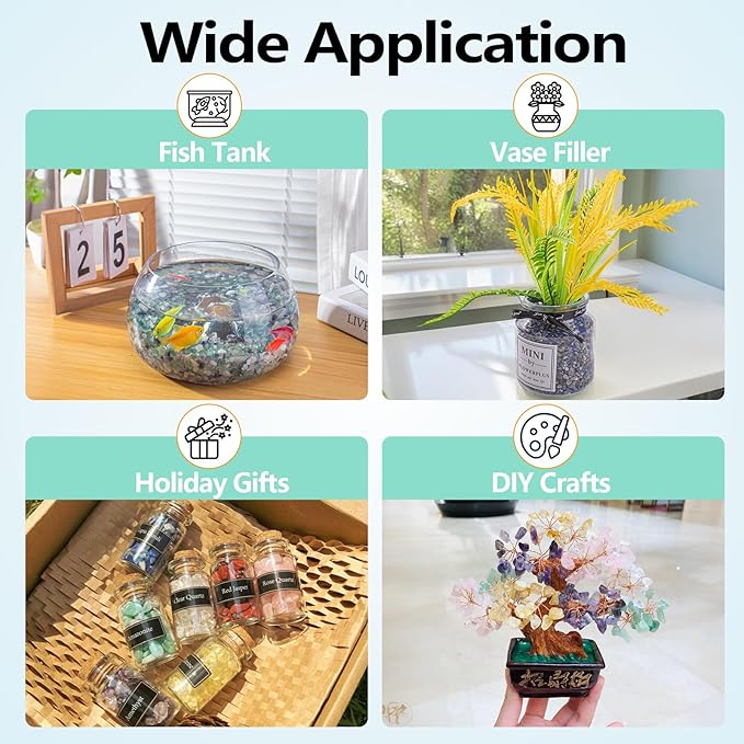 - Wide Application: Lapis lazuli chips are not only suitable for home decoration, but can also be given as a birthday or Christmas gift to family and friends. Perfect for decorating aquariums, succulent plants, vases and DIY handcraft projects