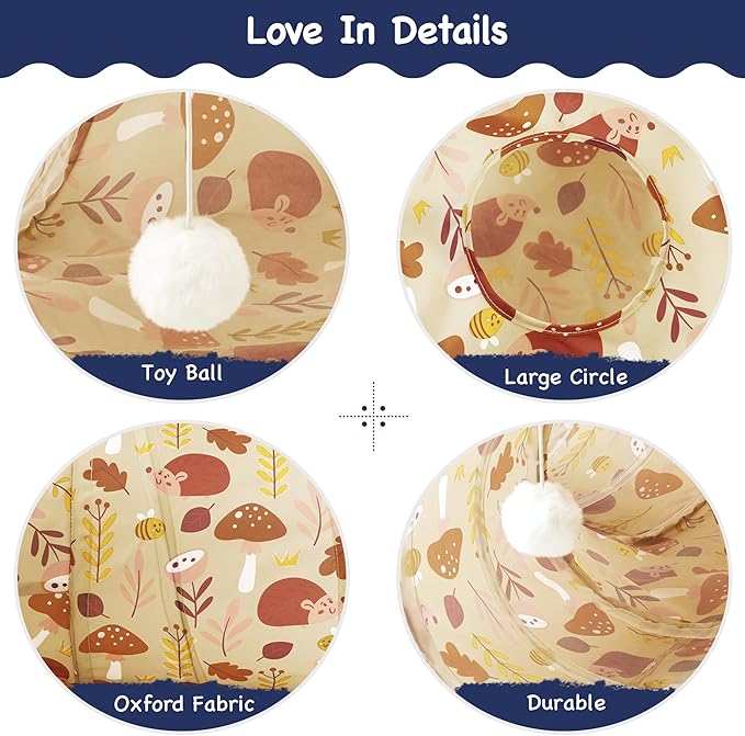 Tempcore Pet Cat Tunnel Tube Cat Toys 3 Way Collapsible, Cat Tunnels for Indoor Cats,Kitty Tunnel Bored Pet Toys Peek Hole Toy Ball Puppy, Kitty, Kitten, Rabbit Khaki Hedgehog