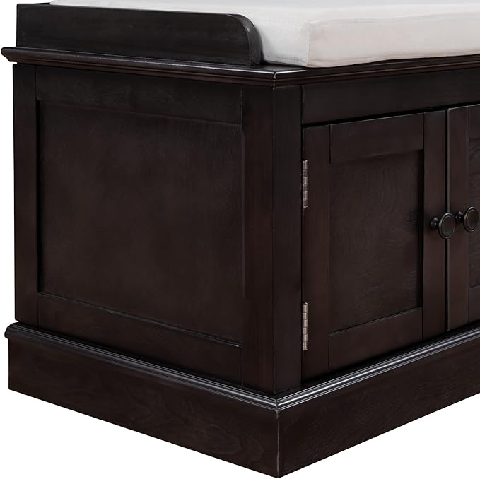 Shoe Storage Bench with 4 Doors and Adjustable Shelves, Shoe Bench with Removable Cushion for Living Room Entryway 42.7" L * 16" W * 17.4" H Espresso