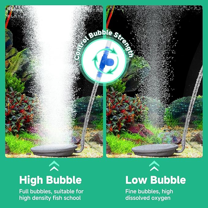 - Adjustable: Come with a two-way control valve, simply twist its knob to freely regulate the bubble size. The different oxygenation amounts satisfy different use requirements. The weight of the 3.1inch air stone is 2.68 ounces/76g and is easily placed at the bottom of the fish tank