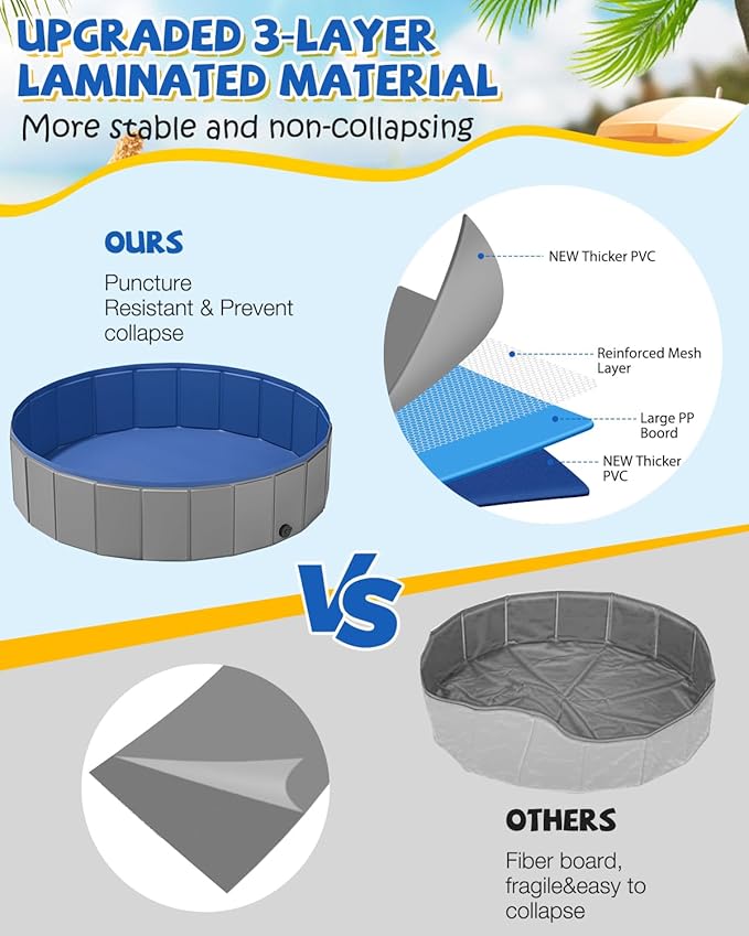 - PORTABLE & CONVENIENT – The dog bath pool is portable and convenient for people to carry and store at any time, which allows your lovely pets to enjoy in the water; There is no need to inflate