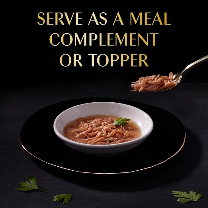- Gourmet Experience: Your cat will enjoy tender pieces of Chicken and Tuna served in a delicate broth over their cat food or as a stand-alone snack