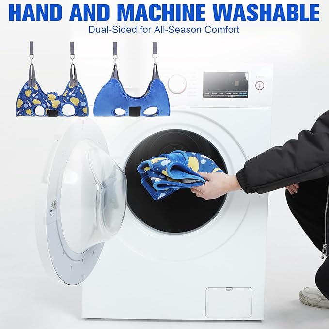 - SAFE DOG HAMMOCK FOR NAIL TRIM: Just place pet legs in holes, then connect the D-ring strap to the dog grooming hammock with a carabiner and fix it on the pole. This dog hammock comes with a adjustable safety strap that fastens securely over the pets back. It's easy to adjust to fit your pet perfectly without worrying about the risk of injury caused by the pet escaping