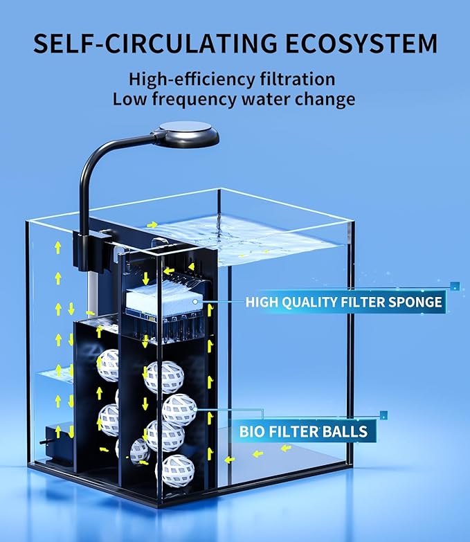 - [Power Filtration] Back-filtration partitioning (physical bin - biochemical bin - water pump bin) provides a highly efficient nitrifying bacteria cultivation environment, effectively keeping the water clear up to 1 month