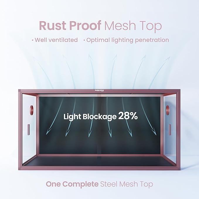- 【Highly Adaptive】Well-lit screen top with only 28% blockage. Compatible with many reptile accessories and equipment, such as heat lamps for reptiles, reptile humidifiers, reptile misters, reptile foggers, reptile UVA and UVB. Our reptile terrarium is great for holding temps and humidity.