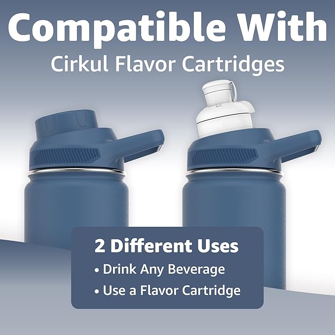 Chill Oasis Water Bottle | Compatible With Popular Flavor Cartridges | BPA Free, Leak Proof, Double-Walled Vacuum Insulated Stainless Steel, and Dishwasher Safe | Cold for 24 Hours (Navy, 12oz)