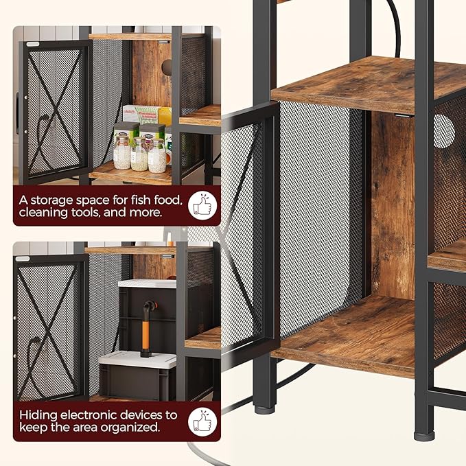 - Easy Power Solution: The fish tank stand, designed for 20-37 gallon tanks, includes 2 AC outlets and 2 USB ports, making it perfect for powering aquarium electronics such as lights and filters. Simplify aquarium maintenance with a handy socket