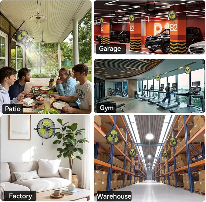 - Easy to Assemble: New frustration free packaging ensures all parts remain intact, making assembly straightforward with the included instructions. 12'' oscillating wall mount fan features a 360-degree tilting that allows the fan to cover a wide area.