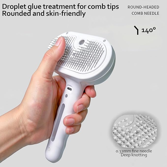 - SPA-Level Grooming - Our Steam Pet Brush redefines pet care with its 4-in-1 system: surface hair grooming, spray deep cleaning, one-touch shedding and soothing massage. Gentle micron-sized steam softens knots and penetrates the fur to remove dirt and dander, while the drip-crafted brush head massages the skin, turning grooming into a relaxing ritual. Perfect for anxious cats, it strengthens the bond with you during each stress-free grooming session.