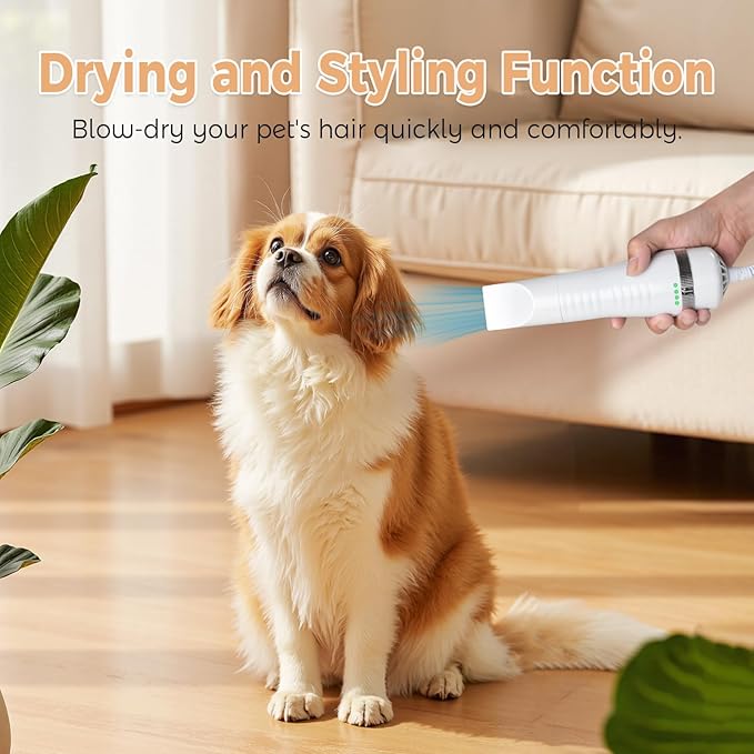 - 600W High-Power Pet Dryer: Innovatively featuring a 600W high-power pet drying function, this cat brush also combines mist-spraying grooming, deshedding, and one-click cleaning. With strong power, it quickly dries pet hair, easily solving hair care challenges