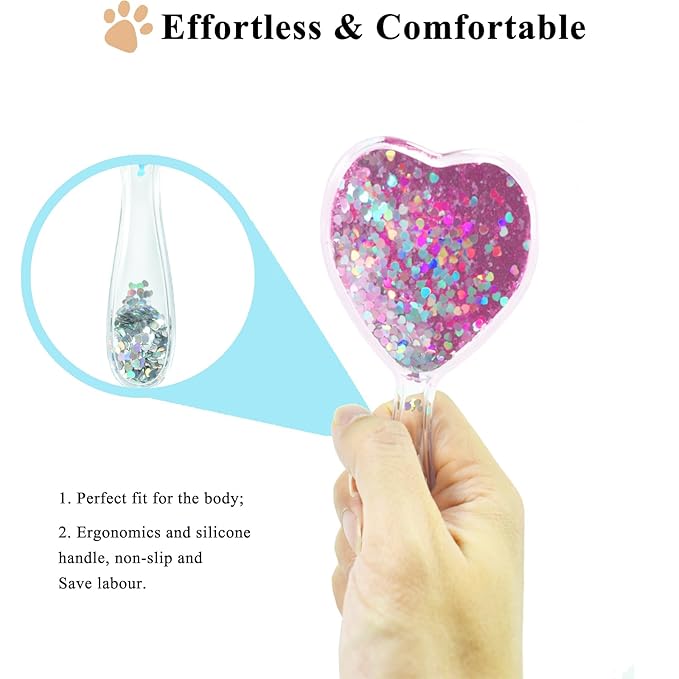 Small Dog Brush, Soft Brush for Shih Tzus, Yorkies, Maltipoos, Maltese, Love Shape Puppy Massaging Hair Comb for Small Dogs Cats Rabbits of All Hair Types (Glitter Pink)
