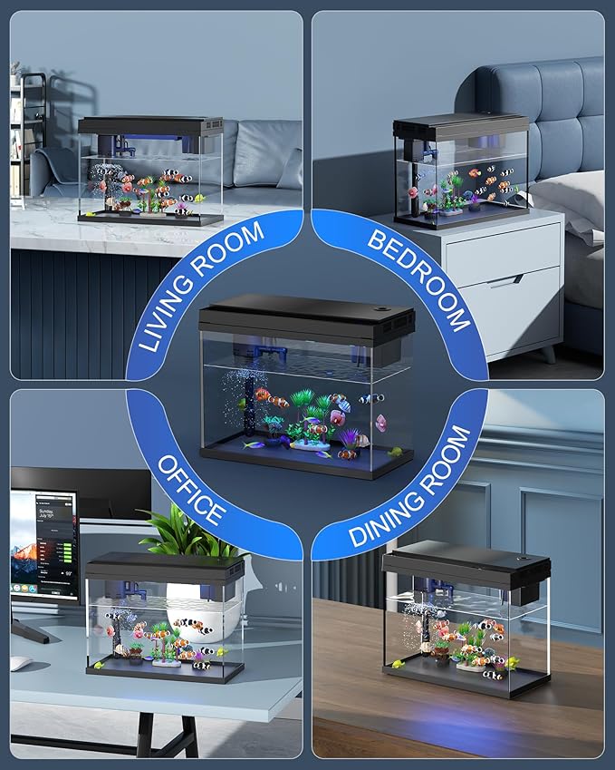 - Multifunctional Design: Compact desktop aquarium featuring temperature display, 7-color LED lighting, and aromatherapy humidifier. Ideal for desks, enhancing your oceanic ambiance