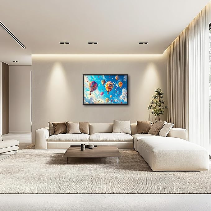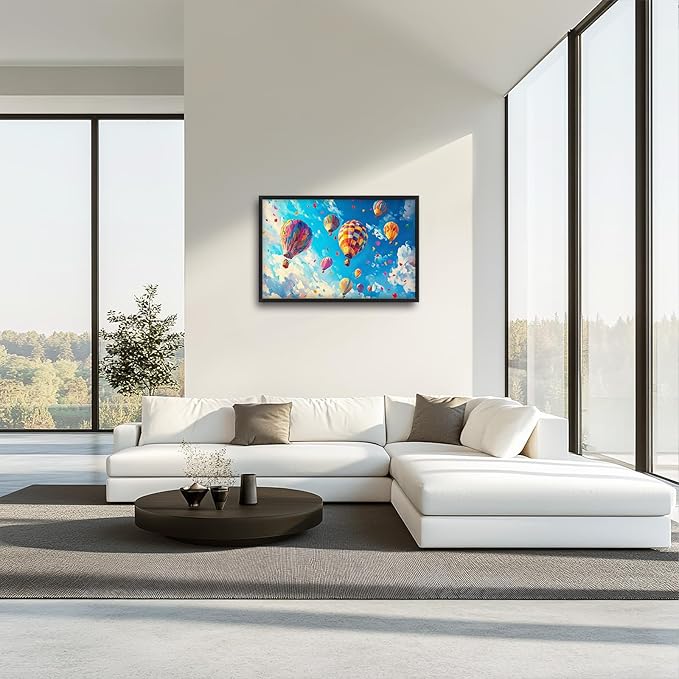 Hot Air Balloon Large Wall Art for Living Room, Framed Oversized Hot Air Balloon Wall Decor Colorful Sky Canvas Painting Modern Artwork for Living Room Bedroom Office Dinging Room 36"x24"
