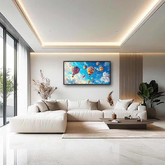 Hot Air Balloon Large Wall Art for Living Room, Framed Oversized Hot Air Balloon Wall Decor Colorful Sky Canvas Painting Modern Artwork for Living Room Bedroom Office Dinging Room 60"x30"