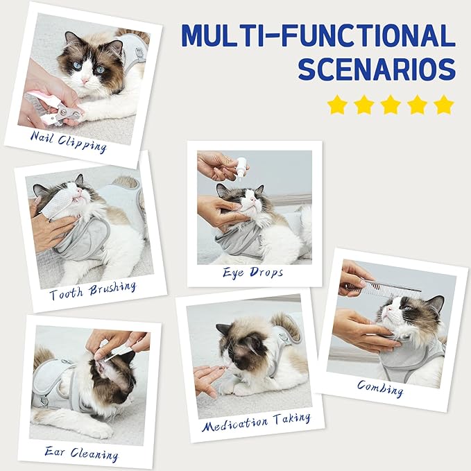 - Versatile for Multiple Uses: Beyond just nail care, our cat wrap is a multi-purpose for all your pet's grooming needs. Use it for teeth brushing, ear cleaning, eye drops, medication administration, and even combing. It's the all-in-one solution for a well-groomed and happy cat.