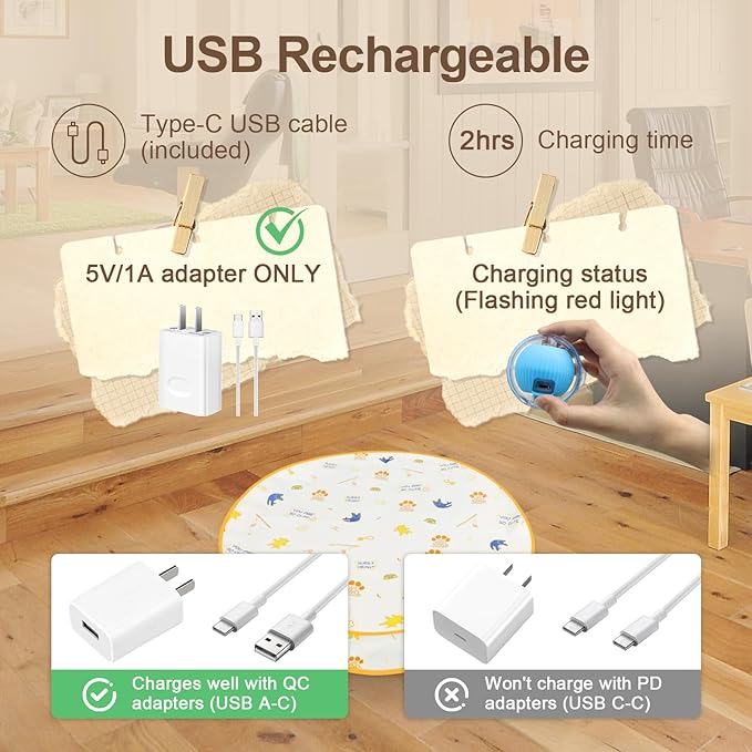- USB Rechargeable: Easily rechargeable via USB, this cat toy eliminates the need for batteries. Low voltage indication: The red light flashes rapidly before shutting down. When charging, the red light flashes, and when fully charged, the red light remains on.