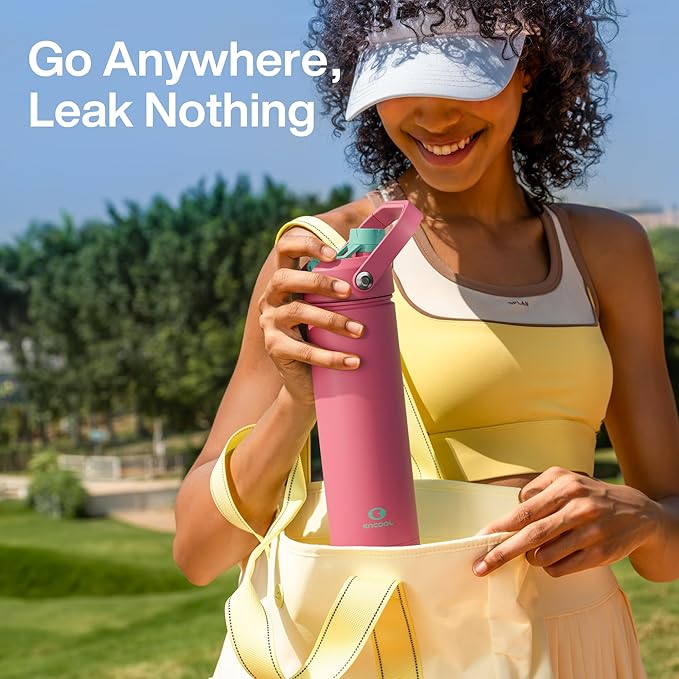 - Sip or Chug, Your Choice: Straw lid for sipping on the go and twist cap for deep hydration, all in one ENCOOL water bottle
