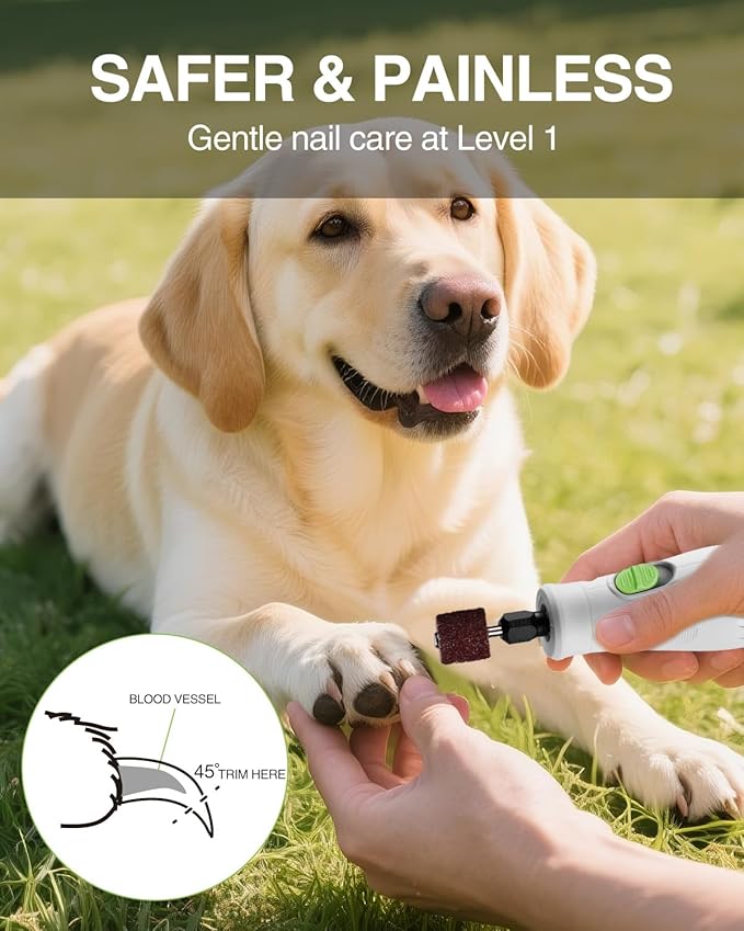 - 2000mAh BATTERY & LED DISPLAY: Up to 130 mins of use on Level 1, the dog nail file provides precise nail care. LED display screen shows speed for easy setting selection