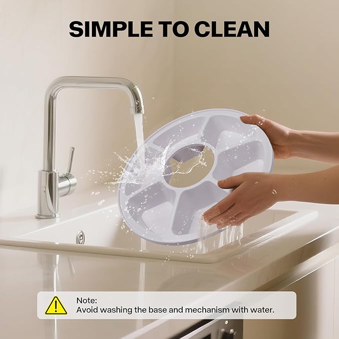 - ⏰ 6-Meal Automatic Feeder – Easily schedule up to 6 meals per day using the built-in electronic timer. Each compartment holds up to 1 cup of food, perfect for portion control, dietary plans, and maintaining a healthy routine for cats or small dogs. This automatic feeding system ensures your pet is fed on time, every time.