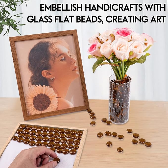 1LB Glass Marbles, Transparent and Smooth Flat Glass Beads for Vases, Mosaic Gem Pebbles for Aquarium Decor, Floral Arrangements, Mancala Stones, Vase Filler and Crafts, Brown