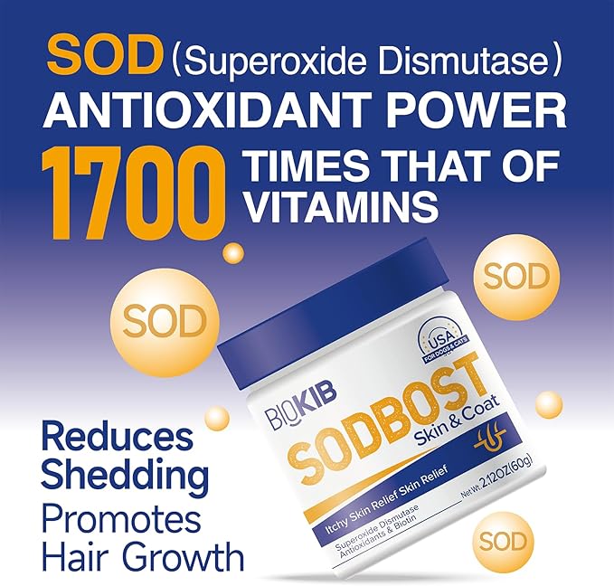 • Advanced SOD Enzyme Power – Made in USA with potent SOD enzyme to repair skin, neutralize free radicals, and strengthen the skin barrier. Ideal for pets with chronic skin conditions. Visible improvement often seen after 1–2 bottles.