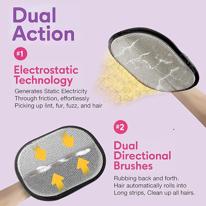 - Effortless Cleaning by Powerful Static Technology -- MyPera Powered by static electricity, the pet hair remover attract lint, pet hair, and dust with simple glide. No more repetitive rolling or struggling to pick up stubborn debris!