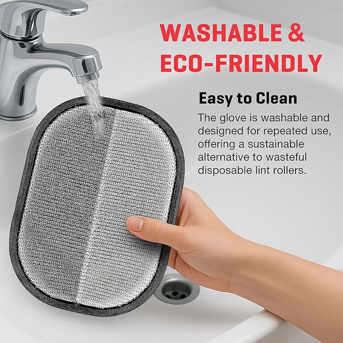- Eco-Friendly & Reusable -- Say goodbye to wasteful sticky sheets ant lint roller! These pet hair removal gloves are washable and reusable, making them a sustainable choice that saves you money and reduces environmental impact. and Cleanup is a breeze—just rinse it with water or toss it in the washer after a thorough session. No hassle, no fuss!