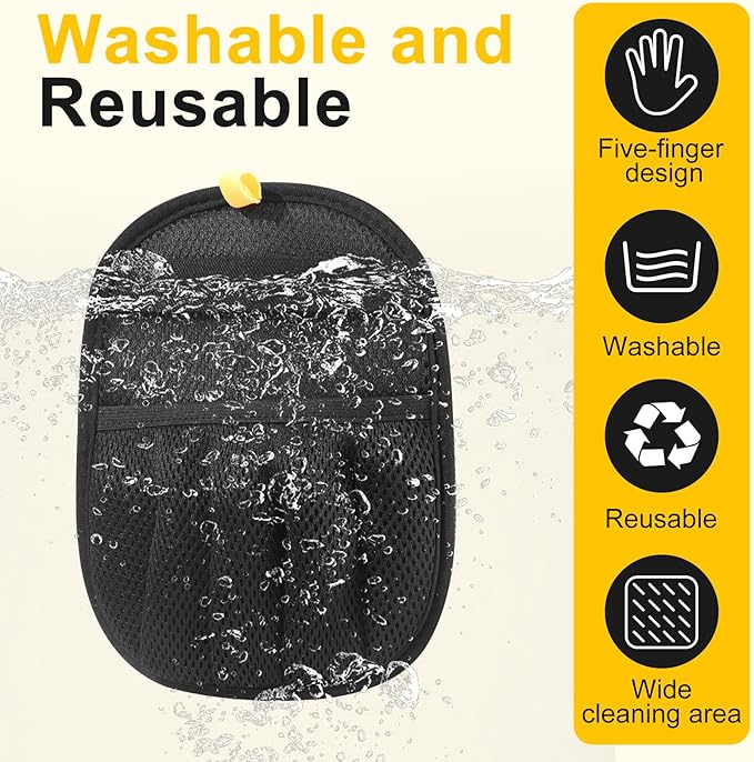 - Effortless Pet Hair Removal – Five-finger electrostatic glove lifts dog & cat hair from couches, carpets, car seats with simple left-to-right strokes—no sticky refills needed.