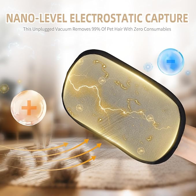 - β‘γEffortless Cleaning with Electrostatic TechnologyγHarnessing the power of static electricity, our magic brush pet hair remover effortlessly lifts lint, pet hair, and dust with easy left-to-right strokes. Forget about tedious rolling or fighting stubborn debrisβour gloves make cleaning a breeze, transforming your experience into a simple and enjoyable task.