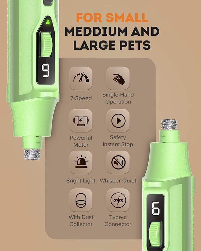 • ONE-HANDED OPERATION: Effortlessly adjust the grinder’s speed without needing to release your pet’s paw, helping keep them calm and preventing any sudden movements